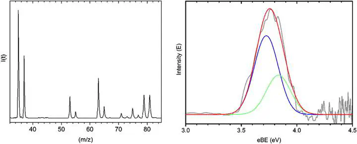 Image credit: Elsevier, Chem. Phys. Lett.The gas phase anion photoelectron spectrum of the Cl− $\cdots$ N2 complex is presented, allowing determination of the electron binding energy, and is compared to CCSD(T) calculations. The calculations reveal three stationary points on the neutral complex surface; a linear C$\infty$v and two C2v symmetry geometries. For the anion complex, two geometries are predicted, similar to the C2v symmetry conformations determined for the neutral. Comparing both computational and experimental results with those from previous work we show trends between anion complex stability and electron stabilisation energy and also the neutral complex stability with respect to the polarisability of the halogen.