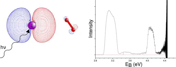 Image credit: Elsevier, J. Mol. Spec.Gas phase complexes formed between bromide and iodide anions and molecular oxygen are investigated via high level CCSD(T) calculations and experimental anion photoelectron spectroscopy. Experimental electron binding energies of the 2P3/2 and 2P1/2 states are determined to be 3.43 and 3.90 eV, and 3.12 and 4.06 eV for the bromide and iodide complexes respectively. Calculations predict one minimum for each of the halide-oxygen complexes corresponding to a bent *Cs geometry, while for the analogous neutral (radical) complexes two stationary points were located; one linear (C$\infty$v) and another T-shaped (C2v). These lie close in energy to one another ($\Delta$E < 1 kJ mol−1) suggesting that internal rotation of the oxygen molecule is highly likely.